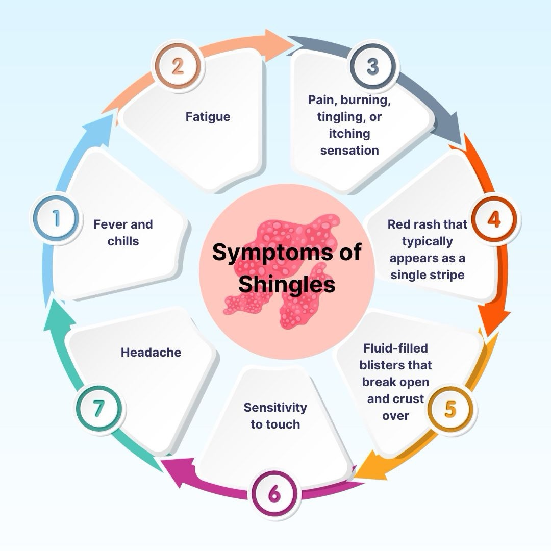Shingles itself is not transmitted person‑to‑person; however, fluid from shingles vesicles can transmit VZV to a susceptible person (causing chickenpox, not shingles). Vaccination is highly effective at preventing shingles and its complications. Early antivirals reduce severity and duration.